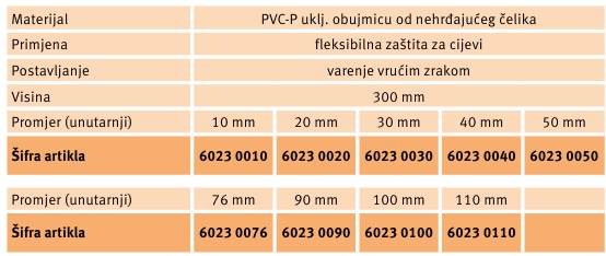 Bauder PVC RE-R (okrugla fleksibilna zaštita za cijevi, zatvorena), PVC-P uključuje obujmicu od nehrđajućeg čelika, postavlja se varenjem vrućim zrakom, visina 300 mm.