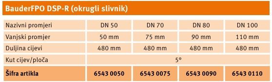 TPO okrugli slivnik od posebnog polipropilena, vari se vrućim zrakom za krovnu membranu i pričvršćuje se vijcima.
